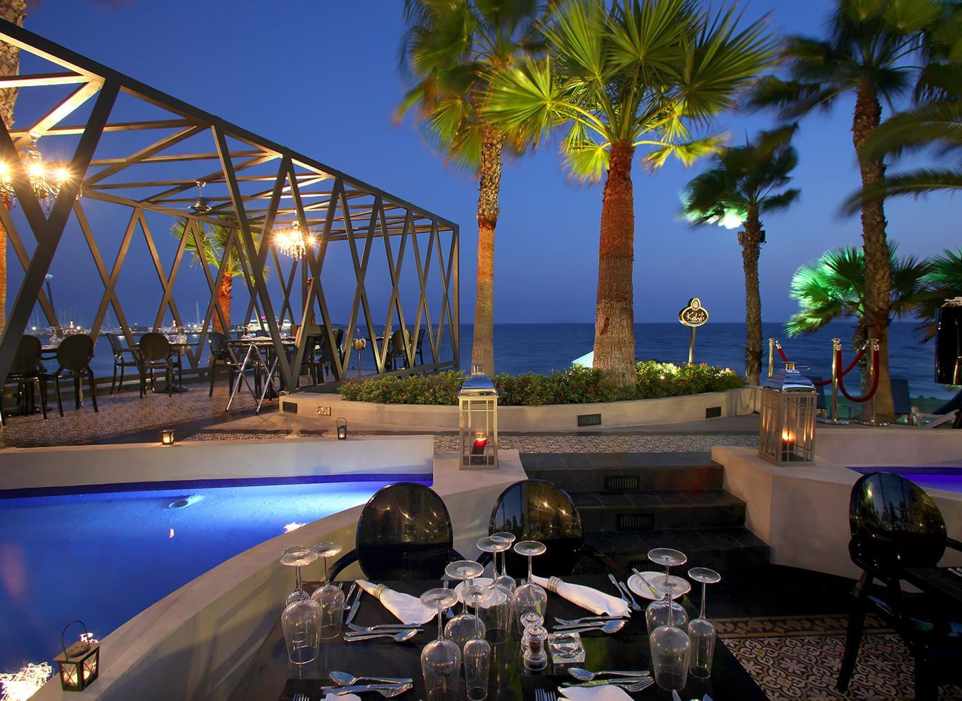 - Kyma – ресторан для тех, кто любит находиться на свежем воздухе и дышать морским прибоем, открыт для обедов и ужинов с великолепным буфетом или меню а’la сarte. Проходят тематические ужины, представляющие разные кухни мира.