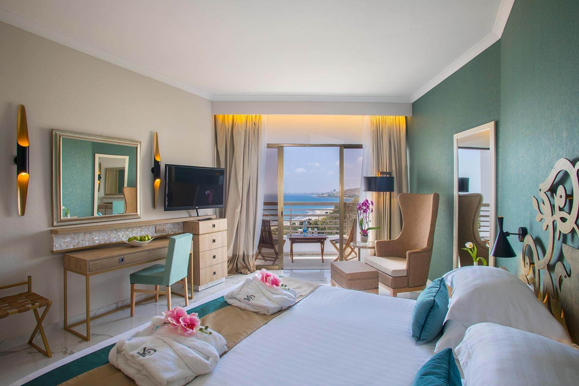 - Executive Junior Suite Sea View (48 кв.м, стильные однокомнатные номера с видом на море, кровать "king-size", зона спальни и гостиной; макс. 2 взр.) - 2-4 этажи;