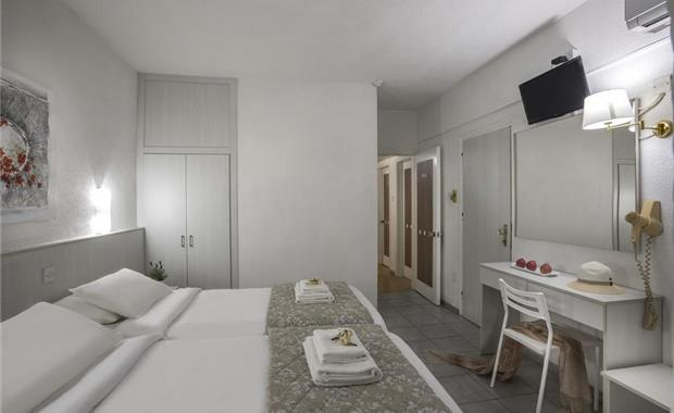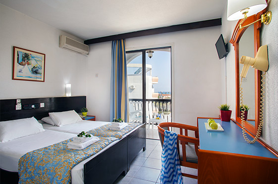 - Standard Room (15 кв.м, 1 двуспальная / 2 односпальные кровати, дополнительное место – раскладная кровать, балкон, вид на окрестности или на бассейн, макс. 3 чел.)