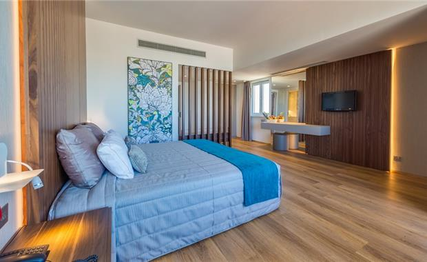- Grand Suite (72 кв. м, номер с панорамным видом на море, находится на 6 этаже отеля, состоит из спальни с кроватью "king size" и гостиной, ванной комнатой с эксклюзивным дизайном; макс. 2 чел.)