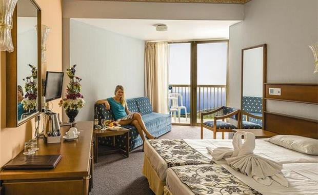 - Side Sea View Room (28 кв.м, одна комната, 1 двуспальная кровать/2 односпальные, диван-кровать, боковой вид на море, макс. 2 взр. + 2 реб./3 взр. + 1 реб.)