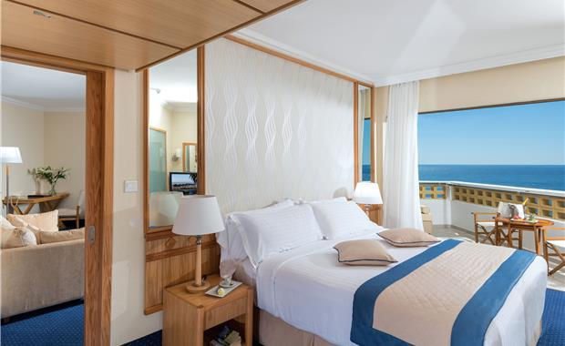 - Junior Suite Land View / Sea View (35 кв.м, номер с просторной гостиной зоной и спальной, ванная комната с ванной и отдельной душевой кабиной, балкон с видом на Средиземное море или красочные сады отеля; к услугам гостей: бесплатный Wi-Fi, DVD-плеер, эспрессо-машину, роскошные туалетно-косметические принадлежности в ванной комнате, поздний завтрак до 11:00 и пользование собственной кабиной для переодевания на пляже с зоной отдыха и шезлонгами; макс. 2 чел.)