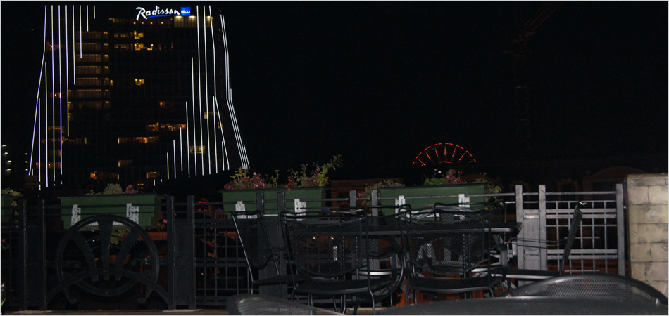 На открытой крыше гостиницы находится открытая веранда-бар с видом на море и горы.