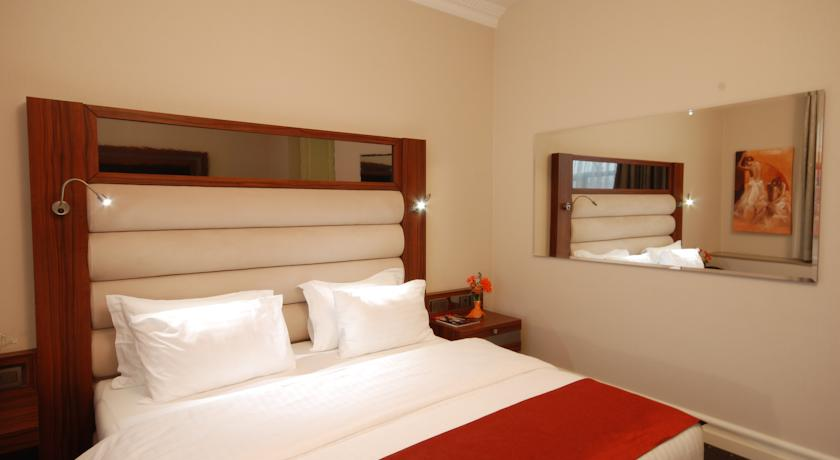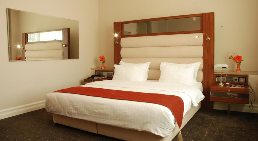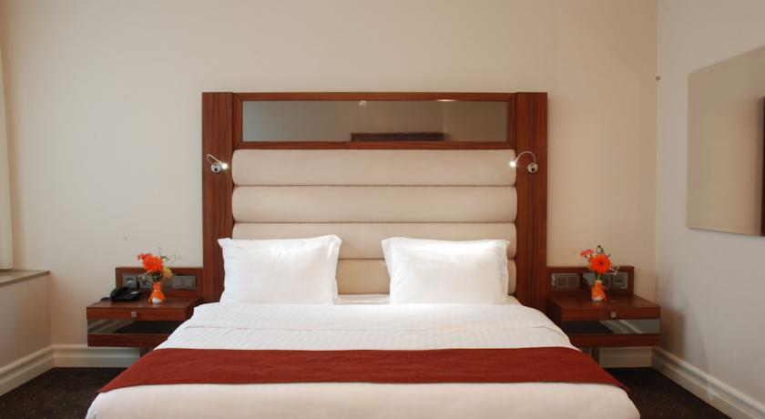 Номер Люкс : с большой кроватью с кондиционером, телевизором с плоским экраном, мини-баром мягкая мебель фен халат и тапочки и собственной ванной комнатой. В номере также имеется гидромассажная ванна. Предусмотрено дополнительное место. Номера с балконои, с которого есть вид на море, сквер и бульвар