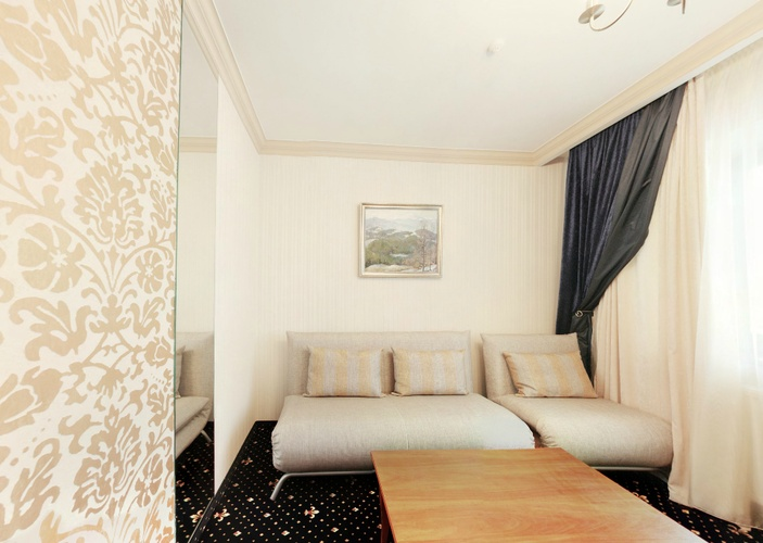 Номерной фонд отеля – это 15 двухместных номеров категории «полулюкс» и 6 номеров категории «люкс», каждый из которых оборудован LCD- телевизором, Wi-Fi Интернетом, телефоном, холодильником с мини-баром и другими предметами,