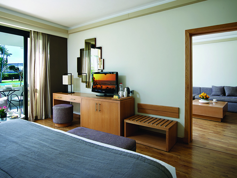 Отель открыт в 1997 г. Последняя реновация – 2011 г. Состоит из основного здания и комплекса корпусов, каскадом спускающихся к морю. Отель хорошо зонирован: есть зона только для взрослых – adults only (блок 3 | 100 номеров различных категорий), зона для семей с детьми (блок 4) и зона общего пользования. Всего в отеле 470 номер различных категорий. Наличие номеров для людей с ограниченными возможностями – 5 номеров: 2 Standard Sea View, 3 Family Room. Connected Room – есть в большинстве категорий и в различных комбинациях.