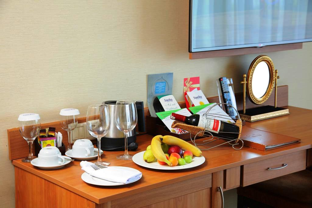 По прибытии: тарелка с фруктами.
