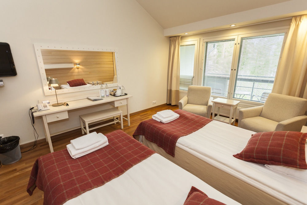 Отель K5 Levi расположен в центре горнолыжного района Леви в 200 метрах от центра курорта, в окружении пышной зеленой растительности.