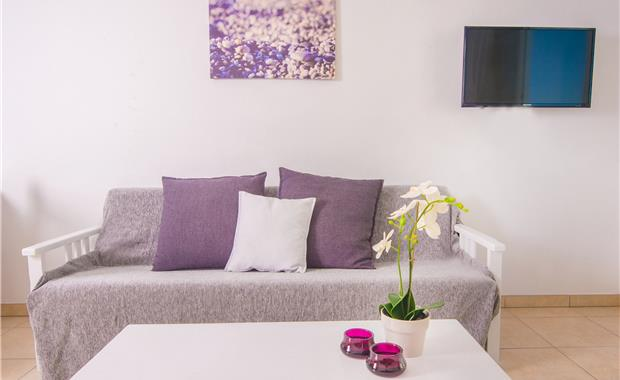 - 1-Bedroom (39 кв.м, спальня, гостиная с мини-кухней, две односпальные кровати, 2 раскладных дивана; макс. 4 чел.)