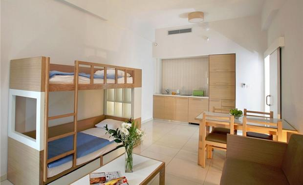 - One Bedroom Sea View (45 кв. м, двухкомнатный номер с видом на море; состоит из спальни с 2 раздельными кроватями и гостиной с раскладным диваном и двухъярусной кроватью, столом для 4 чел. и кухонным уголком; макс.5 чел.)
