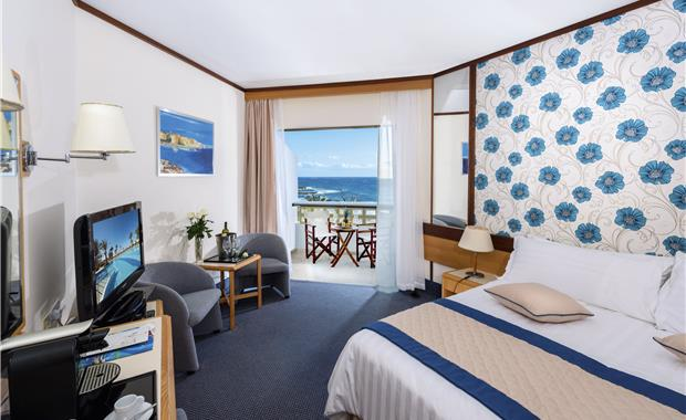 - Standard Sea View (21 кв.м, однокомнатный номер, одна двуспальная или две односпальные кровати, балкон, прямой вид на море, макс. 2 чел.)