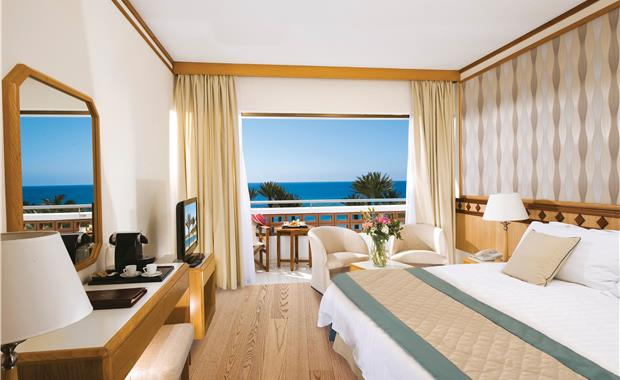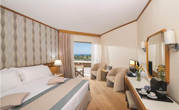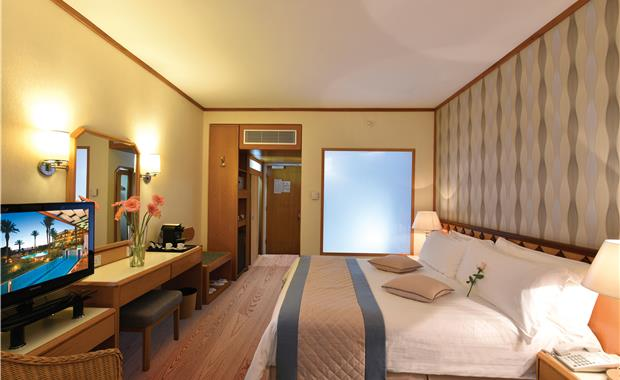 - Executive Junior Suite Land View / Sea View (37 кв.м, все люксы расположены на верхнем этаже и имеют панорамный вид на территорию отеля или на Средиземное море, ванную комнату с джакузи и отдельной душевой кабиной, балкон, включено пользование собственной кабинкой для переодевания на пляже с зоной отдыха и шезлонгами; макс. 2 чел.)