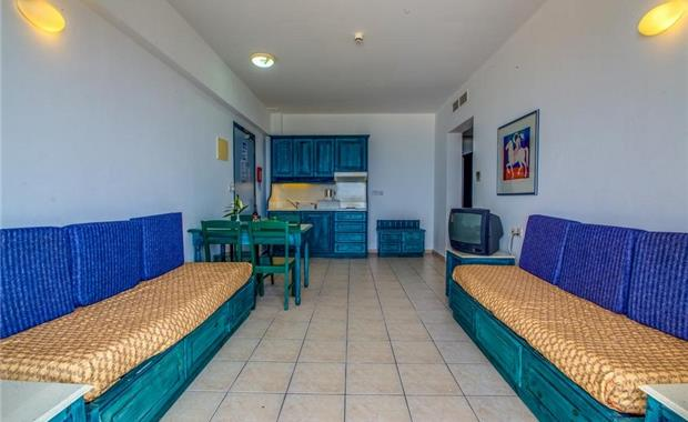 - One Bedroom Sea View (40 кв.м, макс. 2 взр.+2 реб.) состоит из двух комнат - спальни и гостиной. мини-кухня, балкон, вид на море.