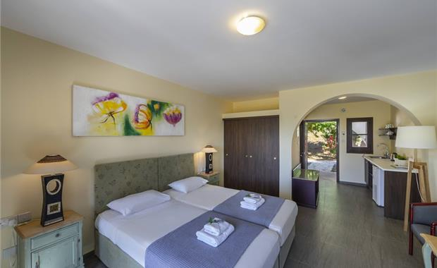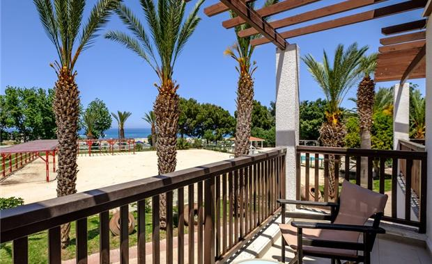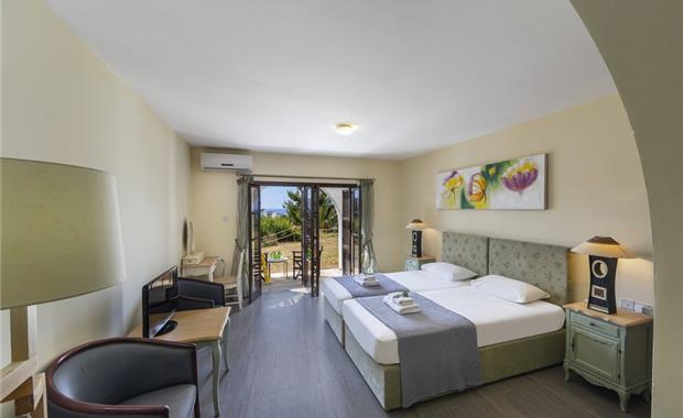 - Standard Sea View Room (26 кв.м, однокомнатный номер, двуспальная кровать / 2 односпальные, раскладной диван, балкон / терраса, вид на море; макс. 3 взр. / 2 взр. + 1 реб.)