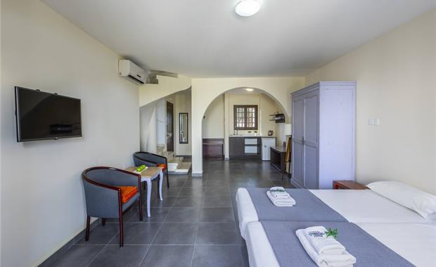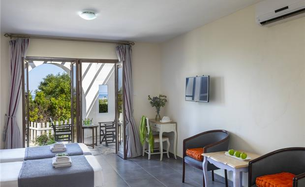 - Family Sea View Room (40 кв.м, спальня, гостиная с кухней, двуспальная кровать / 2 односпальные, раскладной диван балкон / терраса, макс. 4 взр. / 2 взр. + 2 реб.)