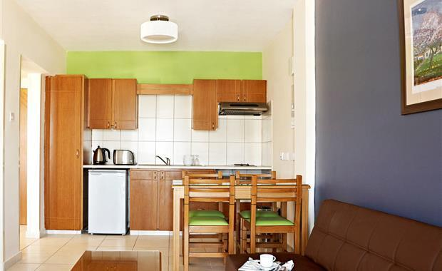 В четырехэтажном здании отеля 100 комфортабельных номеров. К размещению предлагаются однокомнатные номера studio с полностью оборудованными кухней и балконом, вмещающие до 4 чел.
