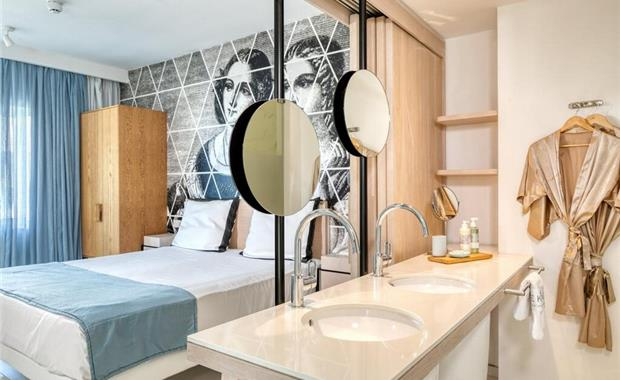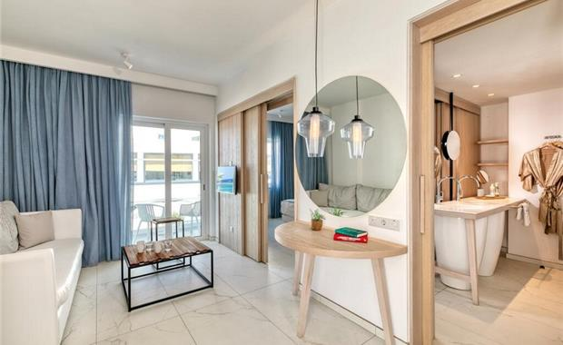 - One Bedroom Suite Sea View (42 кв. м, спальня и отдельно гостиная, двуспальная кровать (200х180) / 2 односпальные кровати, диван-кровать в гостиной, балкон/терраса, вид на море; макс. 3 чел.)