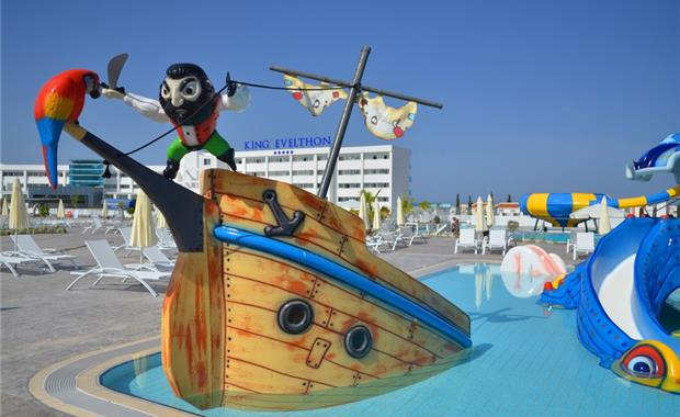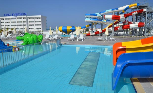 King Evelthon Beach Hotel & Resort 5*Курортный отель расположен в заливе Хлоракас. Большой аквапарк для взрослых и детей. Качественный сервис, разнообразное питание, развитая инфраструктура для семейного отдыха.