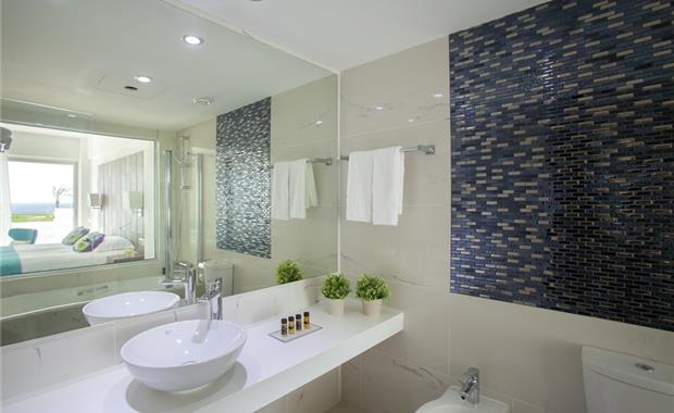 - Family Pool View/Side Sea View/Sea View (34 кв. м, вид на бассейн/частичный на море/на море, макс. 3+1 чел., однокомнатный номер, двуспальная кровать 200х200 см/2 односпальные 100х200 см и двухъярусная кровать 95х200 см, напольное покрытие – плитка/ламинат, балкон, ванная комната с ванной)
