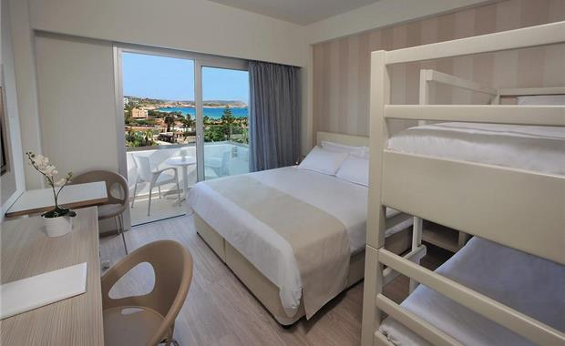 - Junior Suite Sea View (30 кв. м, однокомнатный номер, зона спальни и гостиной, ванная комната, балкон, вид на море; макс. 2 взр. + 2 реб.)