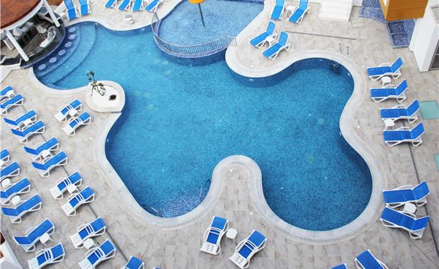 - Junior Suites Pool View (50 кв.м, номер состоит из спальной и гостиной: две комнаты с разделительной дверью между спальней и гостиной, веранда - 14 кв.м, ванная комната немного больше по площади чем в стандартных номерах, макс. 4 чел.) с видом на бассейн