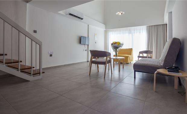 - Loft Suite - расположены в бунгало (49 кв.м, двухкомнатный люкс на два этажа, спальня с двуспальной кроватью (2,0x1,6) наверху, гостиная внизу, доп.место - раскладной диван (1,9x1,5) или софа (2,0x1,5), терраса, вид на территорию, макс. 3 взр./3взр.+1реб./2 взр.+2 реб.)