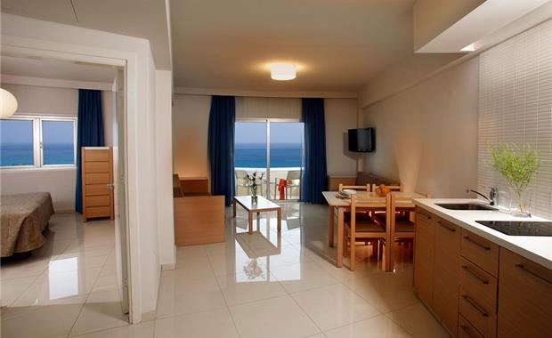 - One Bedroom Sea View (45 кв. м, двухкомнатный номер с видом на море; состоит из спальни с 2 раздельными кроватями и гостиной с раскладным диваном и двухъярусной кроватью, столом для 4 чел. и кухонным уголком; макс.5 чел.)