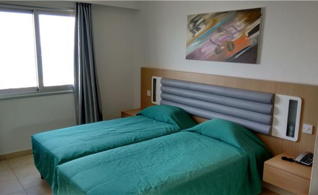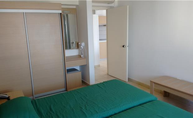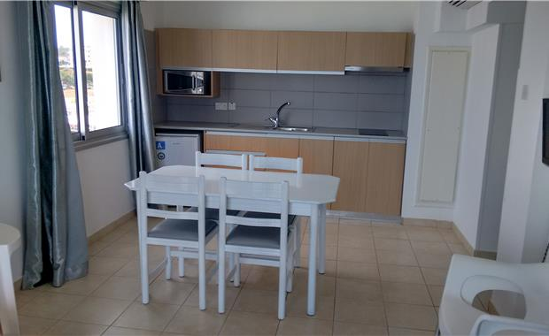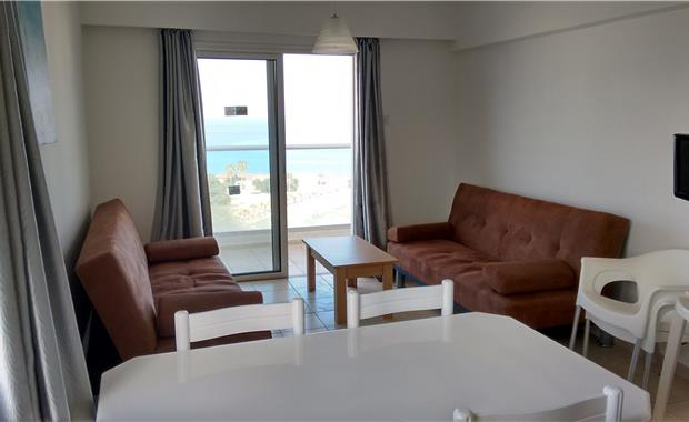 - 44 One Bedroom Apartment (50 кв.м, спальня с двумя отдельными кроватями, гостиная с раскладным диваном, оборудованная мини-кухня с холодильником, микроволновой печью и электрической плитой, балкон с видом на окрестности, боковым видом на море, или с прямым видом на море; макс 4 чел.)
